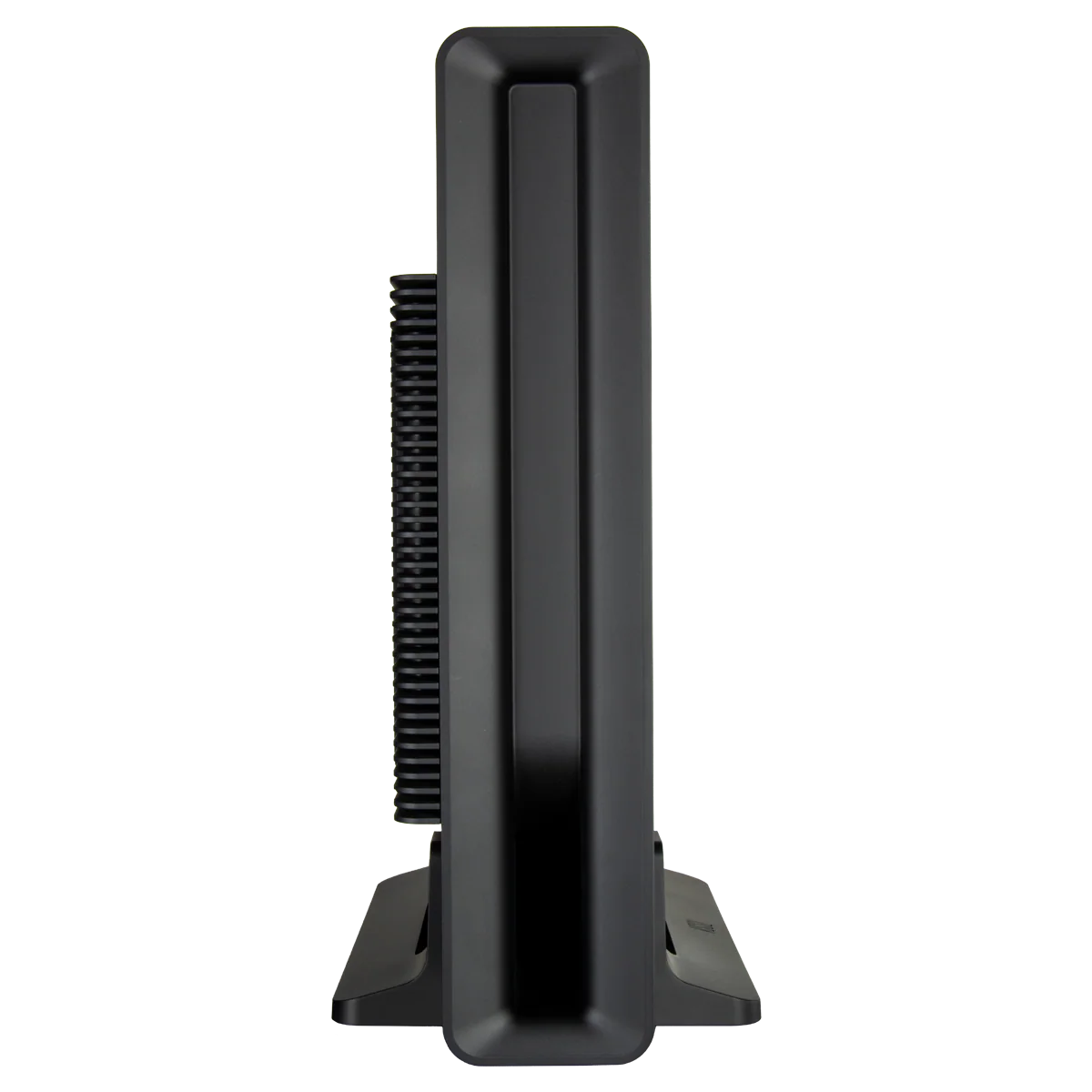 The SX Subwoofer's versatile profile allows it to be installed horizontally underneath furniture or vertically with the included stand, seamlessly blending into any environment.
