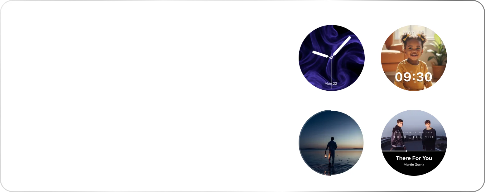 Multiple clock faces, dynamic wallpaper, album art, and playback options.