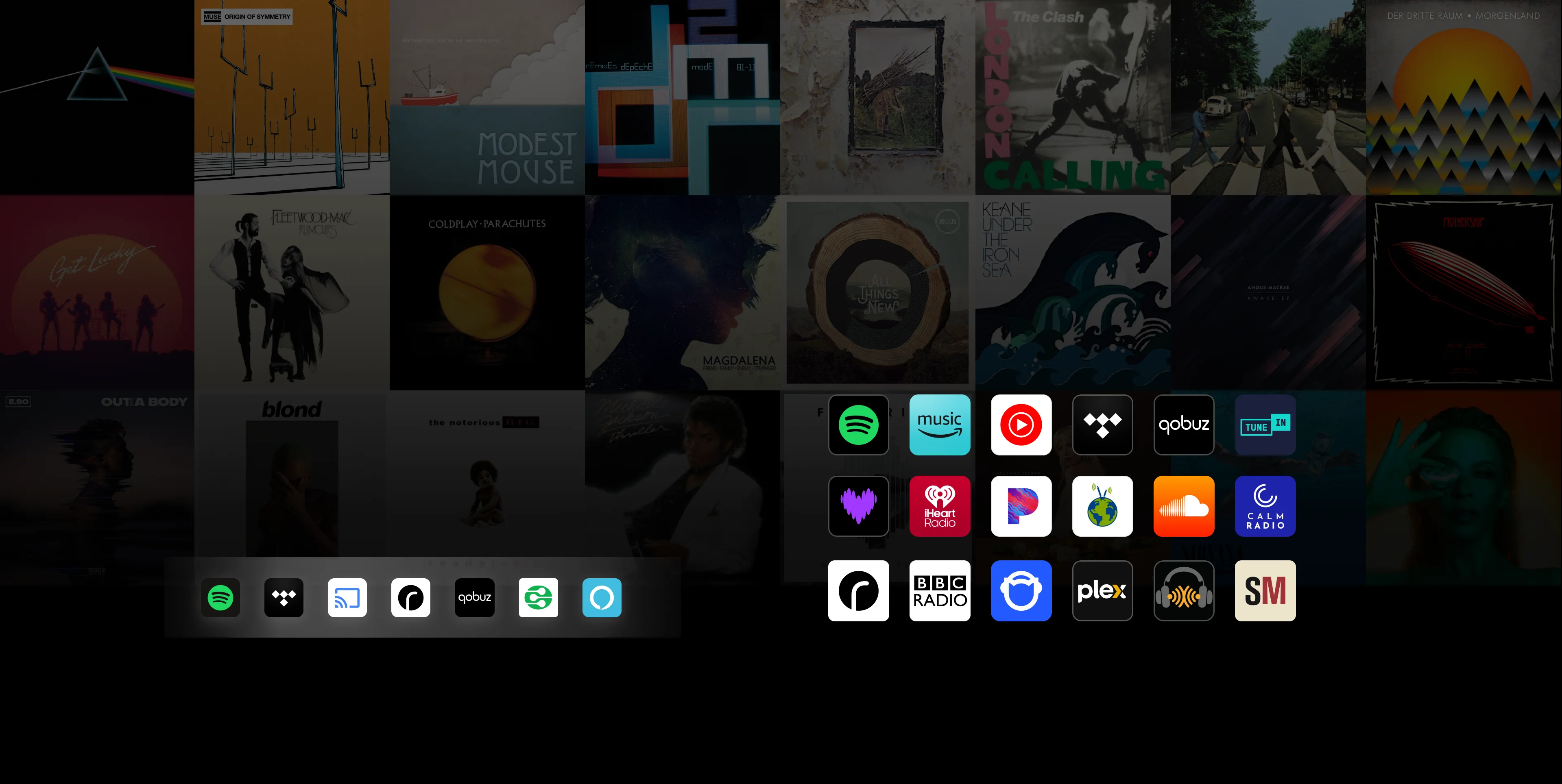 Stream from over 20 services directly in the WiiM Home App—including Spotify, Amazon Music, YouTube Music, TIDAL, Qobuz, Deezer, Napster, Pandora, Plex, SoundCloud, TuneIn, iHeartRadio, and more.